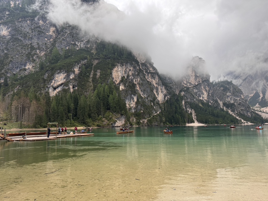 이날, 드디어 그토록 기대하던 브라이에스 호수를 만났습니다. 말로 형언할 수 없을 만큼 황홀했어요! 호수 둘레길과 산책로를 걷는 내내, 푸른 하늘 아래 깎아지른 듯한 돌로미티의 웅장한 봉우리들이 호수 표면에 거울처럼 완벽하게 비치는데, 정말이지 숨이 멎는 줄 알았습니다. 특히 눈부신 에메랄드빛 물빛은 마치 마법에 걸린 듯 심장을 두근거리게 했어요. 사진으로는 절대 담을 수 없는, 그 순간의 벅찬 감동은 제 가슴 속에 영원히 기억될 것 같아요. 평화로운 풍경 속에서 제 모든 감각이 깨어나는 듯한 소중한 경험이었습니다.