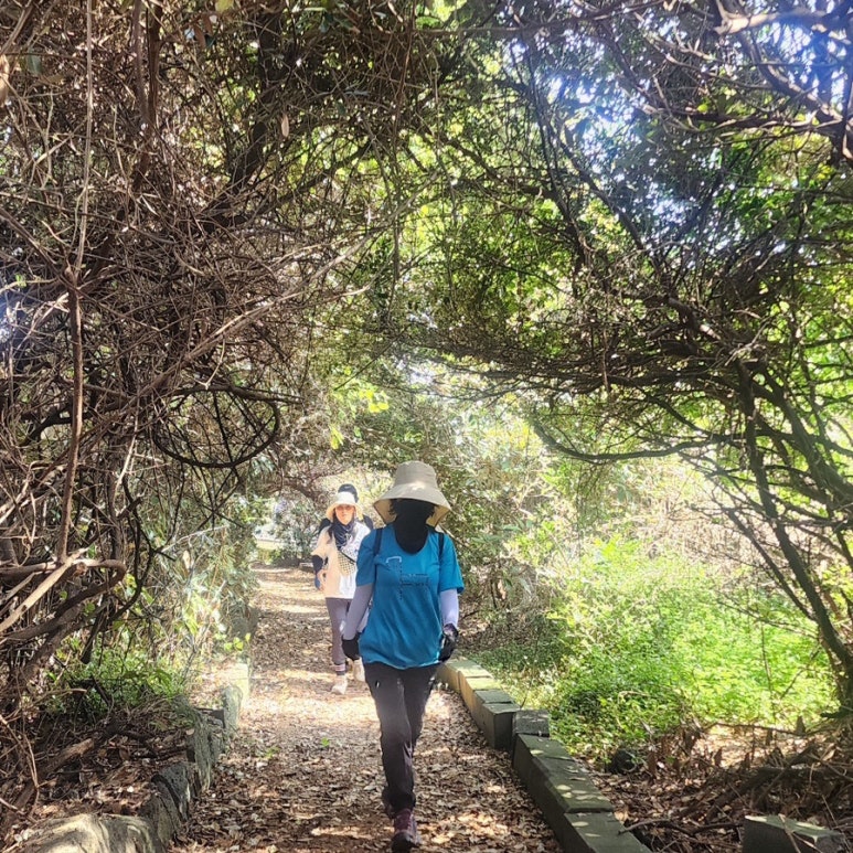 때로는 울창한 숲길을 지나고, 때로는 시원한 바닷바람을 맞으며 걸었습니다. 특히 걷다가 힘들어 주저앉고 싶을 때, 먼저 다가와 "괜찮으세요? 조금 쉬어가실까요?" 하고 물어봐 주시던 길동무님들의 따뜻한 말 한마디 한마디는 제게 큰 힘이 되었습니다. 함께 웃고 이야기 나누며 피로를 잊었던 순간들은, 제게 단순한 걷기를 넘어선 소중한 추억으로 자리 잡았습니다. 걷는 동안 펼쳐지는 제주의 푸른 바다와 고즈넉한 마을 풍경 하나하나가 인솔자님의 설명과 길동무님들의 웃음소리 덕분에 더욱 아름답게 다가왔습니다. 제가 느린 발걸음에도 불구하고 한 코스 한 코스를 완주할 수 있었던 것은 온전히 여러분의 배려와 응원 덕분이었습니다.