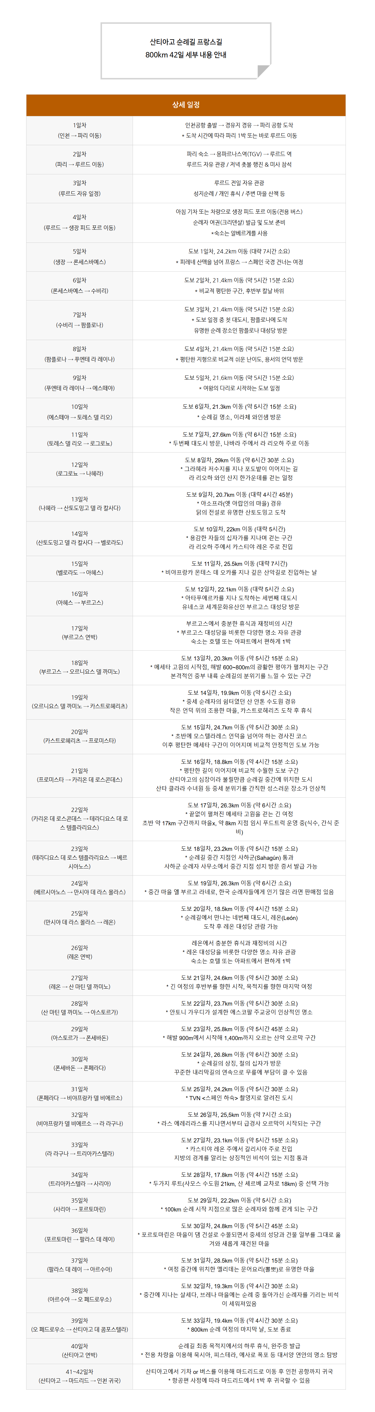 산티아고 순례길 42일 일정