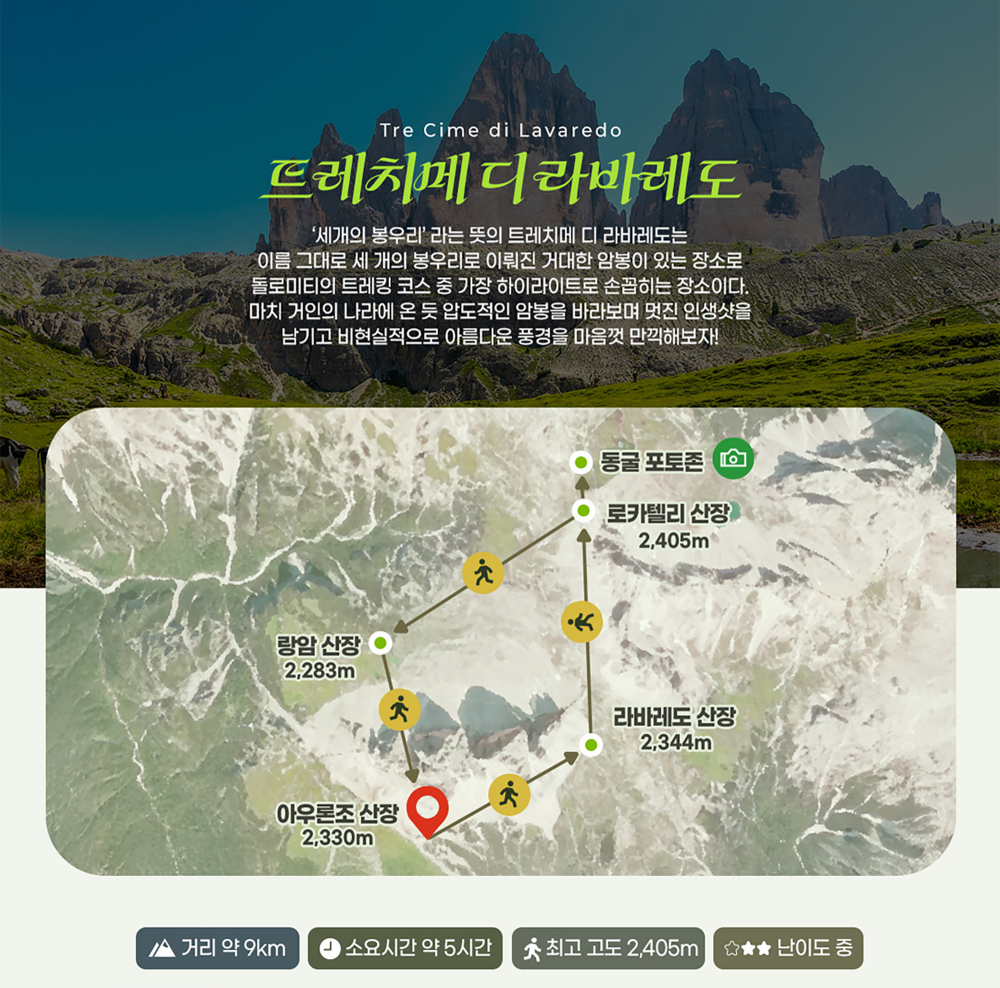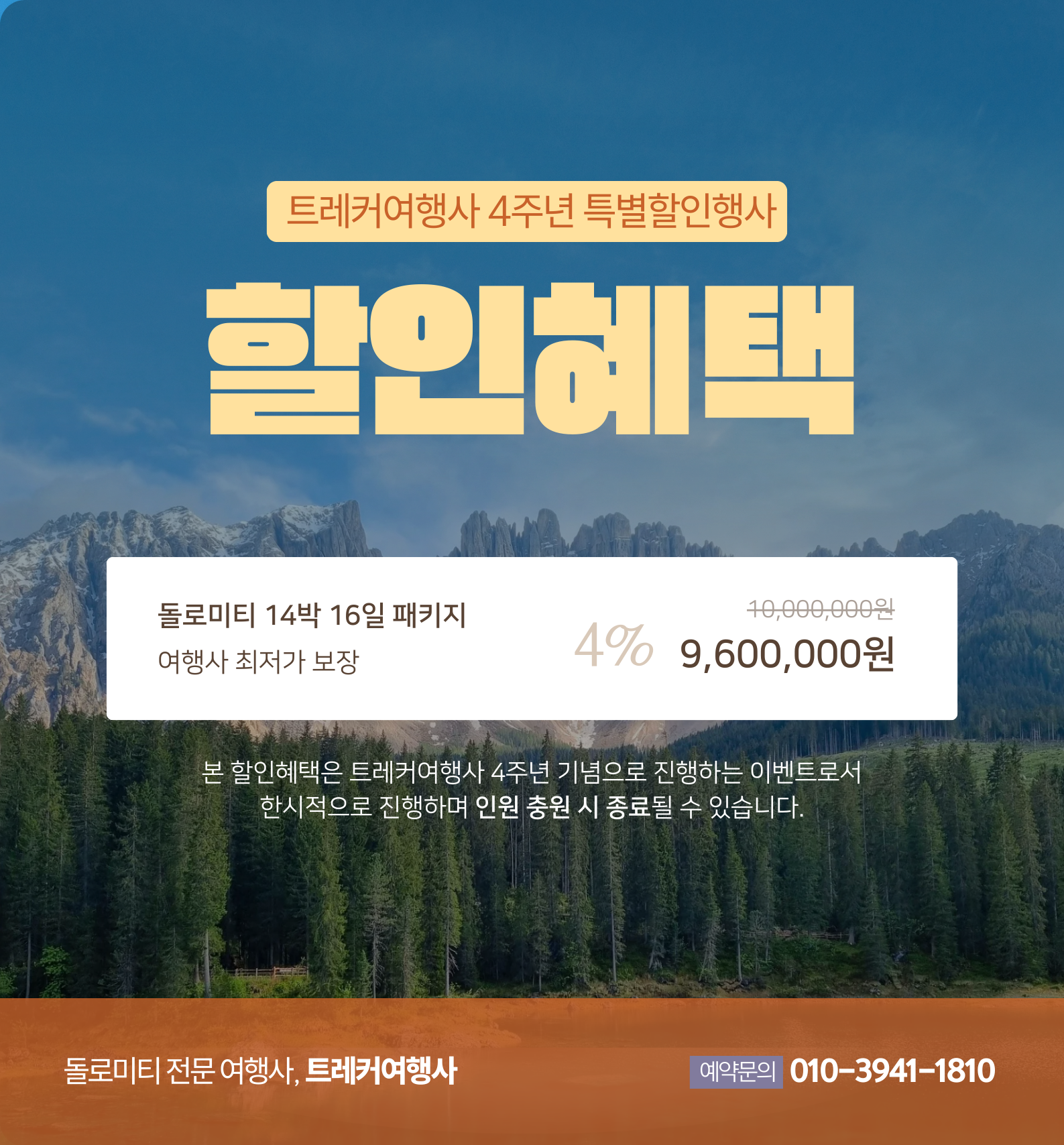 동시에 느끼는 돌로미티 트레킹이 될 수 있습니다.