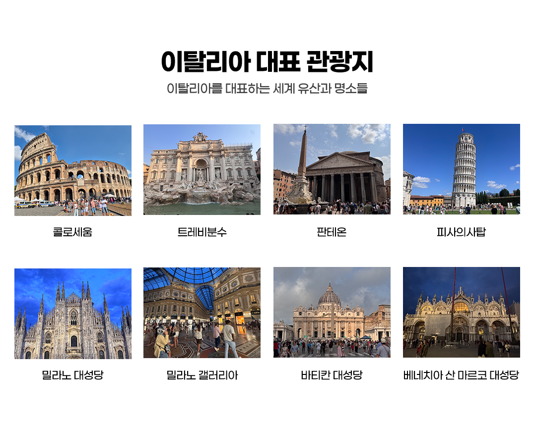 이탈리아 관광 중심지를 한번에 연결해서 즐겨보실 수 있습니다.